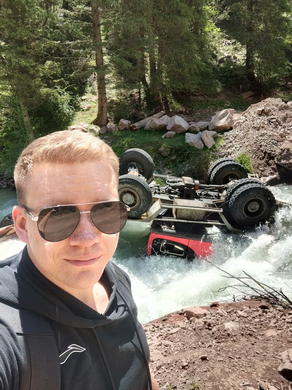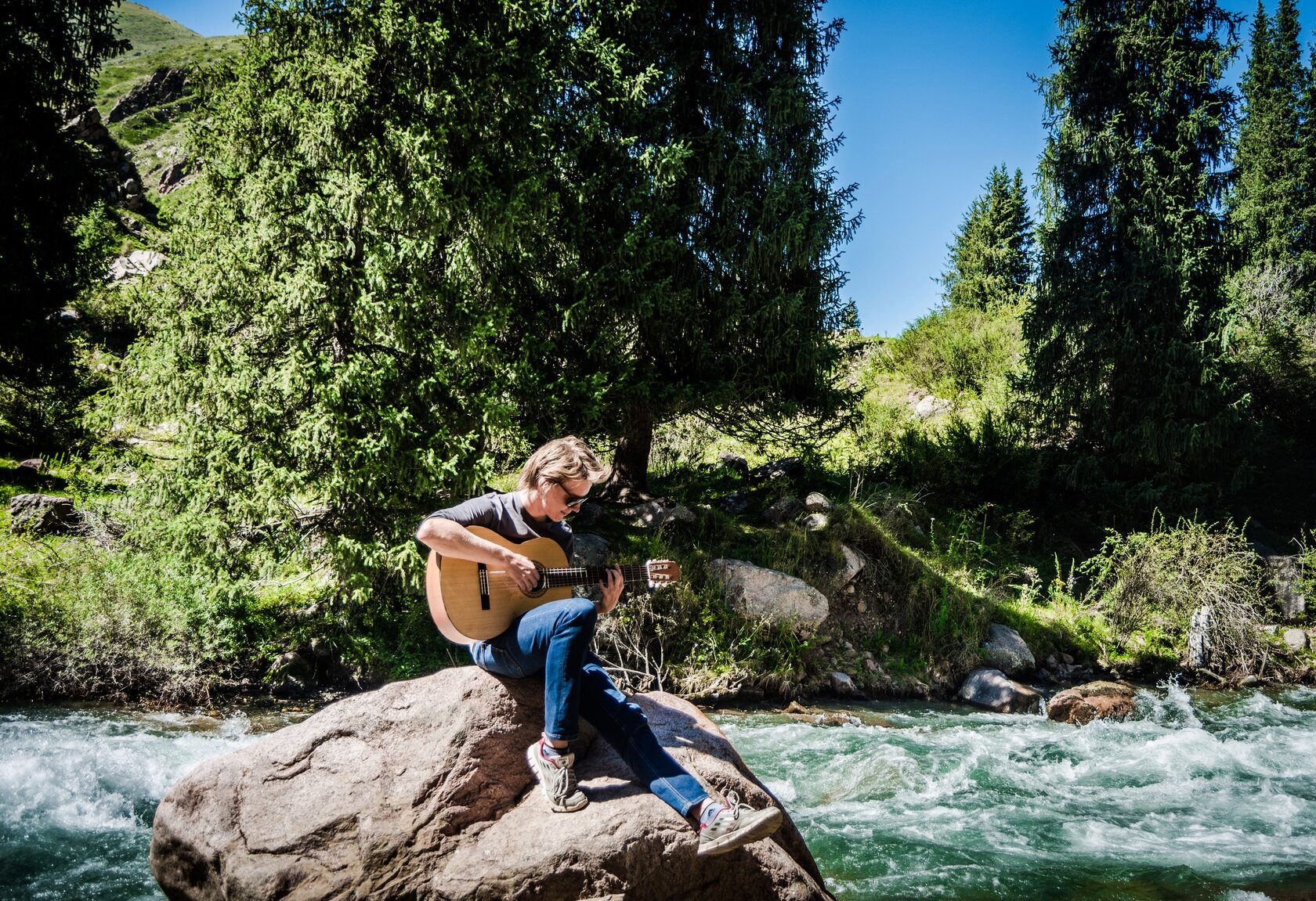 Позирую с гитарой. Мог бы и поиграть, но попробуй возле горной речки поиграй